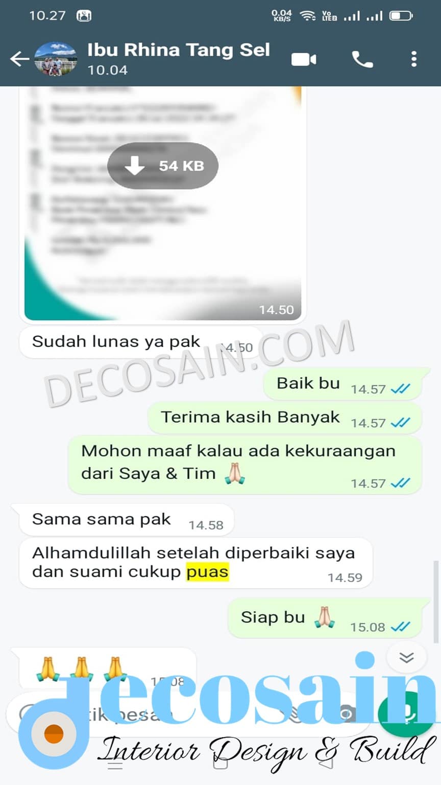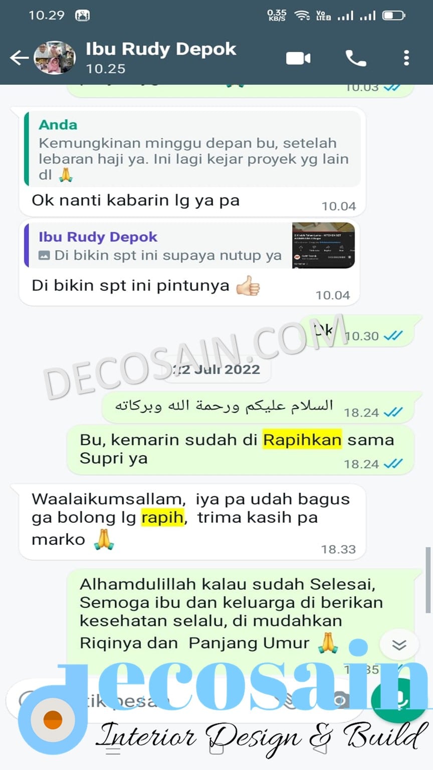 Pastikan Anda membaca review dan testimoni tersebut. Dengan begitu Anda bisa menilai sendiri kinerja dan kualitas kami sehingga bisa lebih yakin untuk segera menghubungi dan menggunakan jasa kami Decosain.